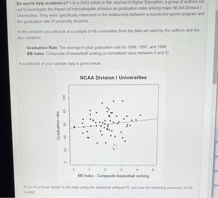 Solved N Do Sports Help Academics In A 2003 Article In The Chegg Com